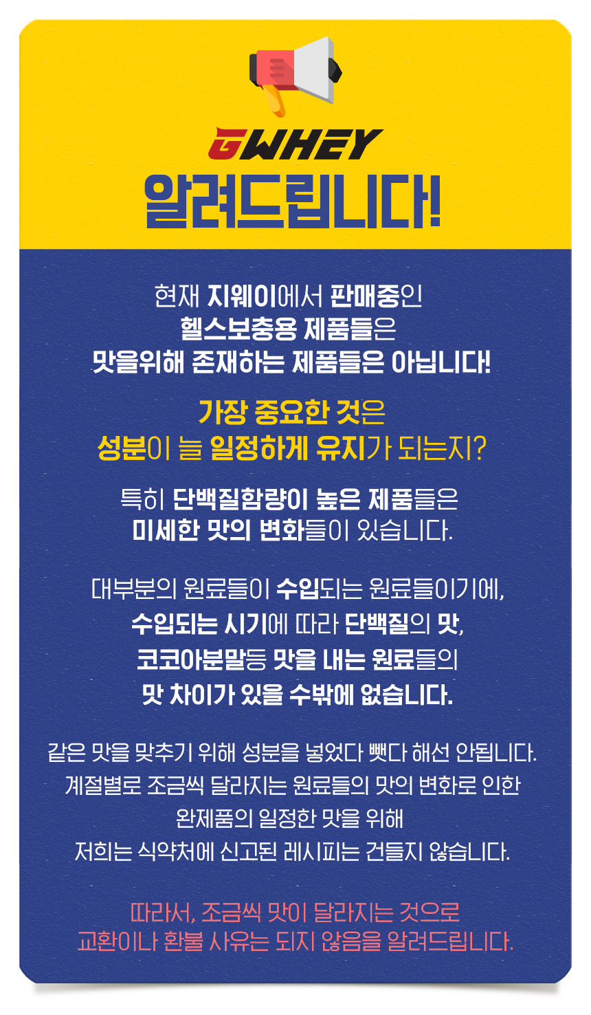 | 원재료명 및 함량 | 분리유청단백(우유,미국산),고구마분말,옥수수전분,코코아분말,L-카르 니틴(영양강화제),L-아르기닌(영양강화제),마카,로이신,발린,이소로이신,아미노믹스분말(L-페닐알라닌,L-로이신,L-메티오닌,L-라이신염산염,팔라티노스,L-이소로이신,L-발린,L-히스티딘,L-트레오닌,L-트립토판),비타믹스분말(비타민C,팔라티노스,분말비타민E,니코틴산아미드,비타민A,판토텐산칼슘,비타민B6염산염,비타민B1염산염,비타민B2,엽산,비타민D3,비오틴,비타민B12),초코렛향 분말(합성착향료),L-글루타민(영양강화제),구연산(산도조절제),스테비올배당체. |