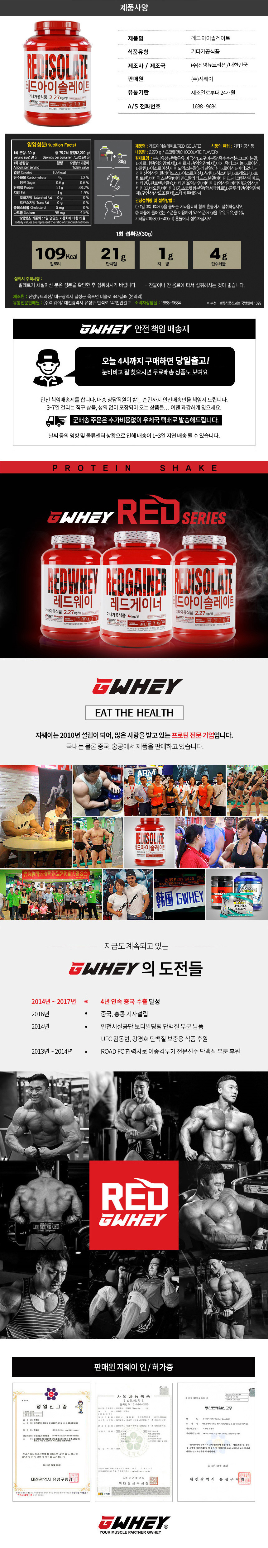 | 제품명 | 레드아이솔레이트 WPI 프로틴 단백질 보충제 2kg 초코맛 |